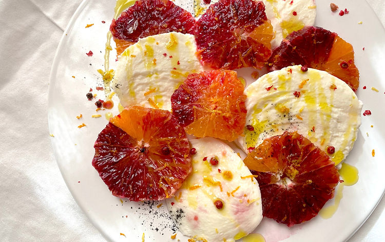 ブラッドオレンジの甘みとモッツァレラのまろやかさが、美味 しいオリーブオイルと黒胡椒でぐっと引き締まり、想像以上の美味しさに。