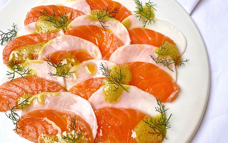 いかがでしたか?サーモンとカブを交互に並べるだけで、こんなにもおしゃれなカルパッチョに。美味しいオリーブオイルで作るドレッシングが、素材の旨みを引き立て、シンプルなのに奥深い味わいになります。手間なく作れるので、ぜひおもてなしの日に活用してみてくださいね!