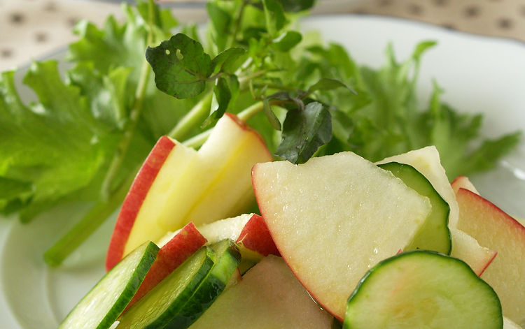 【フルーティーで美味しいオリーブオイルを味わう、りんごとキュウリのサラダ】