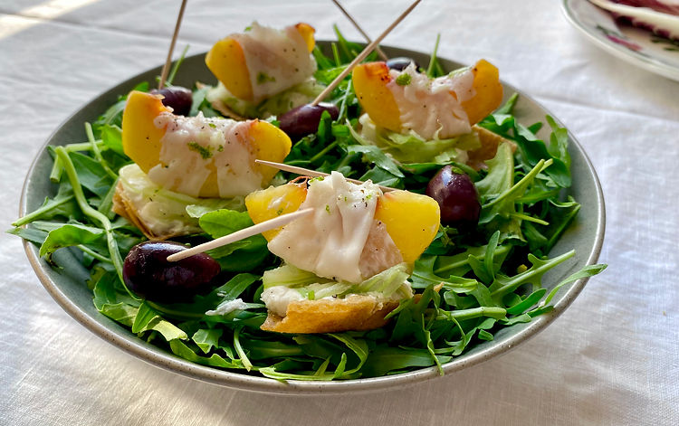 旬の桃を、風味豊かなラルドとまろやかなリコッタチーズでドレスアップ。