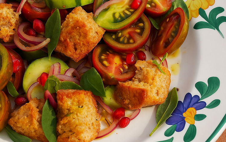 トスカーナの家庭料理として愛されるパンツァネッラは、シンプルながら奥深い味わいのサラダ。