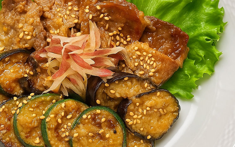 とろけるなすとジューシーな牛肉を、美味しいオリーブオイルと味噌だれで包み込みました。
